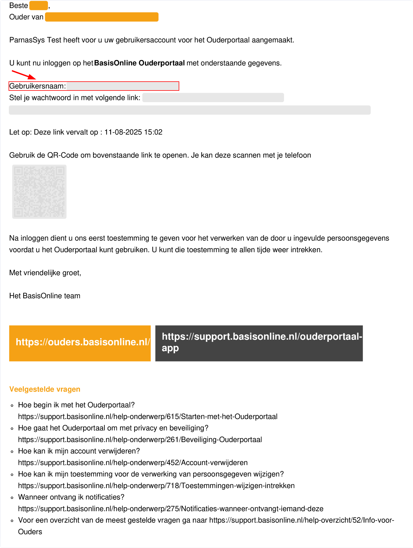 De titel van de e-mail kan bijv, zijn: "U bent toegevoegd als ouder op het ouderportaal".