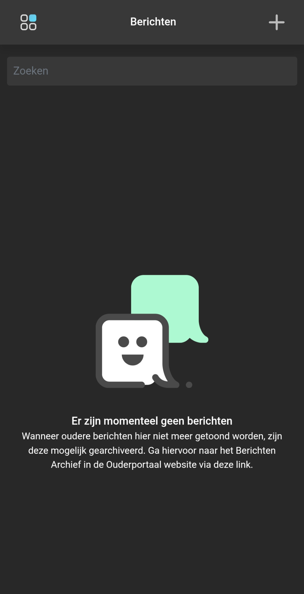 Bij oudere gesprekken die niet in de huidige lijst worden getoond, kun je het Berichten Archief inzien.