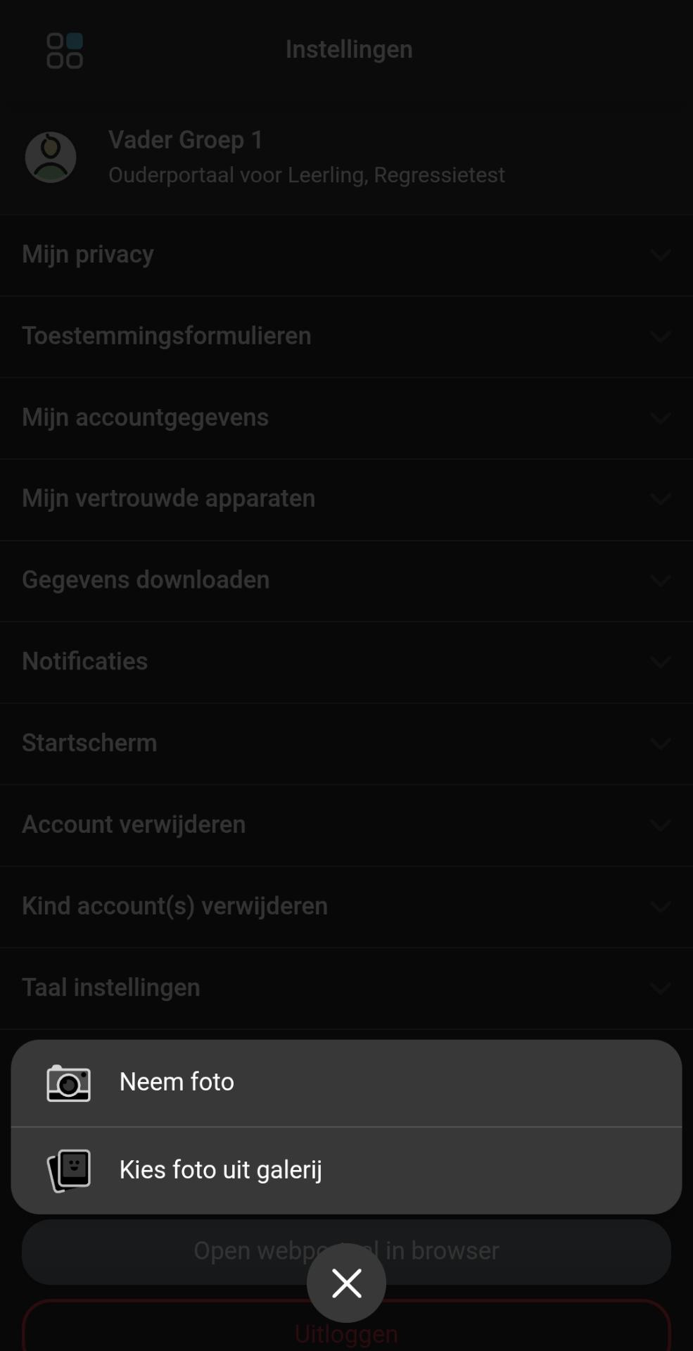 Stap 4: Maak nu een keuze uit 'Neem foto', om zelf een foto te maken of 'Kies foto uit galerij', om vanuit de telefoon een bestaande foto te selecteren:
